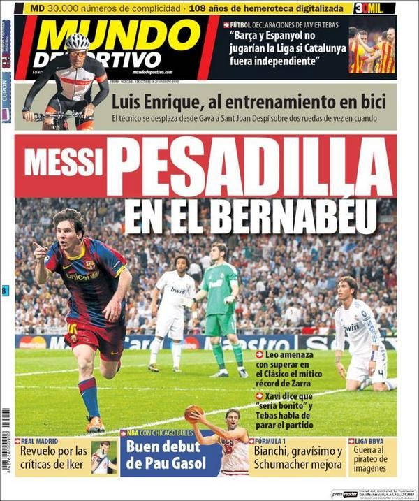 Η Μπαρτσελόνα με την επανέναρξη του πρωταθλήματος, ύστερα από τις υποχρεώσεις των εθνικών ομάδων, αγωνίζεται κόντρα στην Εϊμπάρ. Αν ο Μέσι δεν καταφέρει να πετύχει εκεί τα 3 τέρματα που χρειάζεται για να γίνει αυτός ο πρώτος σκόρερ, τότε είναι πιθανό αυτό να συμβεί στο clasico που θα διεξαχθεί στο “Σαντιάγκο Μπερναμπέου”.
