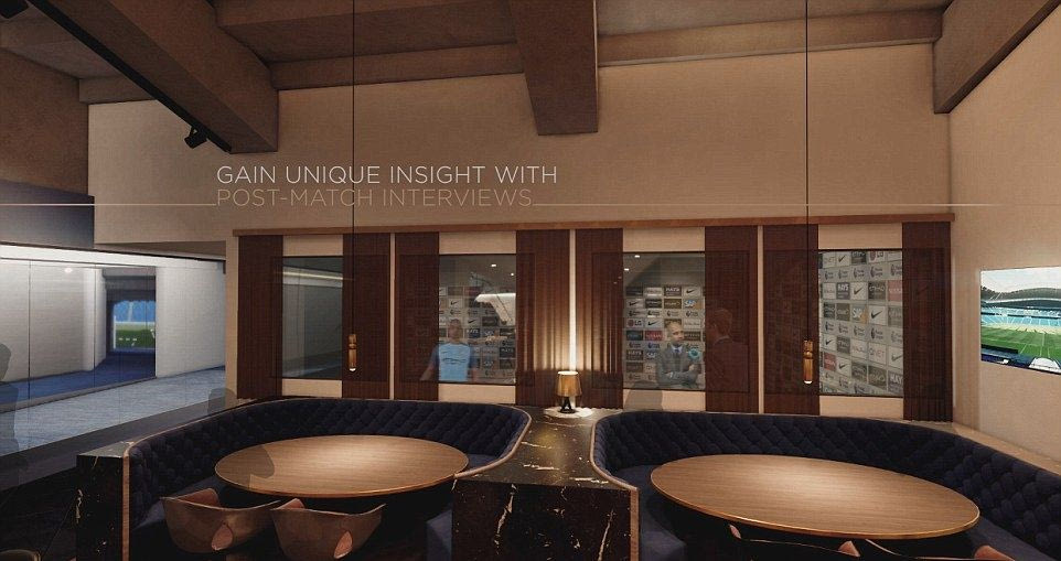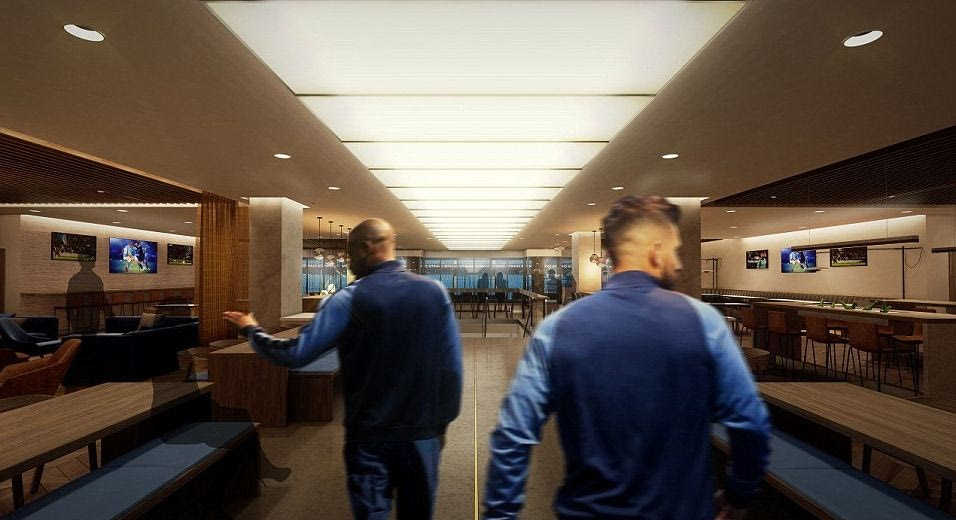 Εκτός του ότι είναι φυσικά υπερπολυτελέστατο, υπάρχει ένας γυάλινος τοίχος, απ’ όπου οι παρευρισκόμενοι θα μπορούν να βλέπουν τα αστέρια τους στη διαδρομή τους προς τον αγωνιστικό χώρο. Θα είναι δηλαδή μια “ανάσα” από τους αγαπημένους τους ποδοσφαιριστές.