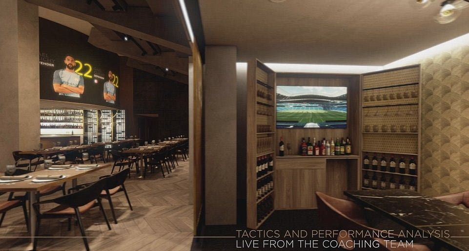 Παράλληλα η θέα στον αγωνιστικό χώρο είναι “μαγική”. Υπάρχει επίσης μια τεράστια γιγαντοοθόνη στο εσωτερικό του εστιατορίου, καθώς επίσης και ένας γυάλινος τοίχος που το χωρίζει από την αίθουσα συνεντεύξεων! Το έργο θα είναι έτοιμο από τη νέα σεζόν κιόλας.