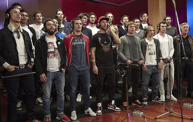 Σε ρόλο τραγουδιστών, βρίσκονται όλοι οι παίκτες των “μερένγκες”, καθώς και ο προπονητής της ομάδας, Κάρλο Αντσελότι.