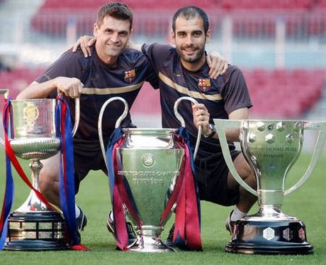 Πολύ αργότερα, οι δυό τους ανέλαβαν την τεχνική ηγεσία της Μπαρτσελόνα και την οδήγησαν στην κατάκτηση δύο Τσάμπιονς Λιγκ.