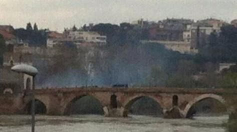 Η γέφυρα Μίλβιο στους καπνούς ενώ εκτυλίσσονται τα επεισόδια