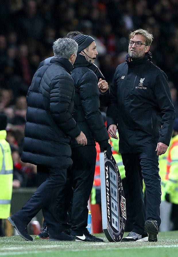 Ζοζέ Μουρίνιο και Γιούργκεν Κλοπ έζησαν με πάθος το σπουδαίο ματς του “Old Trafford” και αυτό φάνηκε στο φινάλε όπου με αφορμή ένα επεισόδιο εντός γηπέδου μεταξύ του Άντερ Ερέρα και του Φιρμίνο (ο μέσος της Γιουνάιτεντ τράβηξε παρατεταμένα από τη φανέλα τον επιθετικό της Λίβερπουλ και εκείνος τον έσπρωξε, με τον διαιτητή να δείχνει και στους δύο κίτρινη κάρτα) κόντεψαν να… έρθουν στα χέρια.
