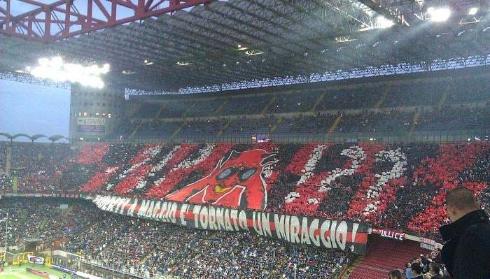 Οι “ροσονέρι” είχαν δημιουργήσει μία εξίσου όμορφη χορογραφία στο derby della Madonnina τον Μάιο του 2012, όταν είχαν ηττηθεί με 4-2 από την Ίντερ. Σε αυτήν, παρουσιαζόταν ένας άνθρωπος με κιάλια και την εξής φράση: “Το να σας βλέπουμε τον Μάιο είναι σαν να βλέπουμε αντικατοπτρισμό”.