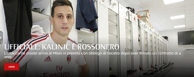 Τα μεταγραφικά χτυπήματα διαδέχονται το ένα το άλλο από πλευράς “ροσονέρι” και το τελευταίο ακούστηκε δυνατά στην ποδοσφαιρική Ιταλία το μεσημερι της Τρίτης, με την ομάδα του Μοντέλα να κάνει δικό της και επίσημα τον Νίκολα Κάλινιτς.