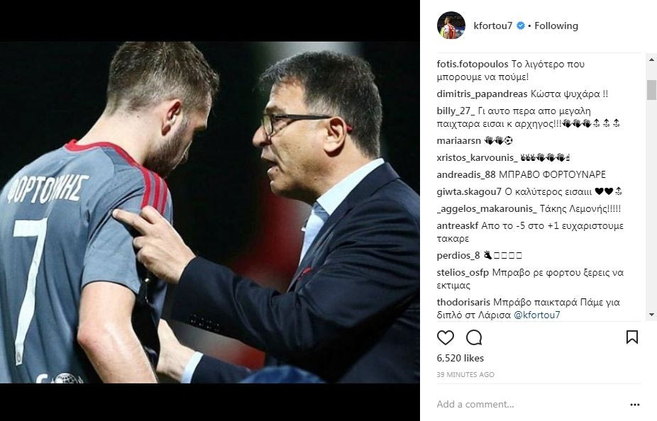 Μία μέρα μετά την απόλυση Λεμονή, ο Κώστας Φορτούνης ανέβασε ποστ στο λογαριασμό του στο Instagram με τον Έλληνα προπονητή και την ατάκα: “Σε ευχαριστούμε για όλα!!!”.