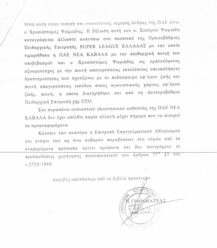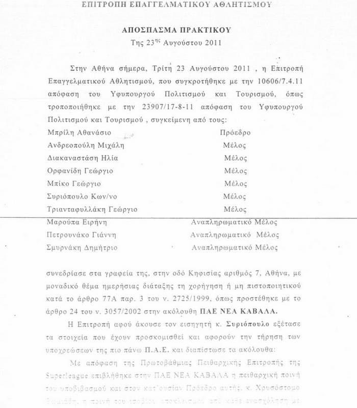 Το σκεπτικό υποβιβασμού για Καβάλα και Ολυμπιακό Βόλου (photos)