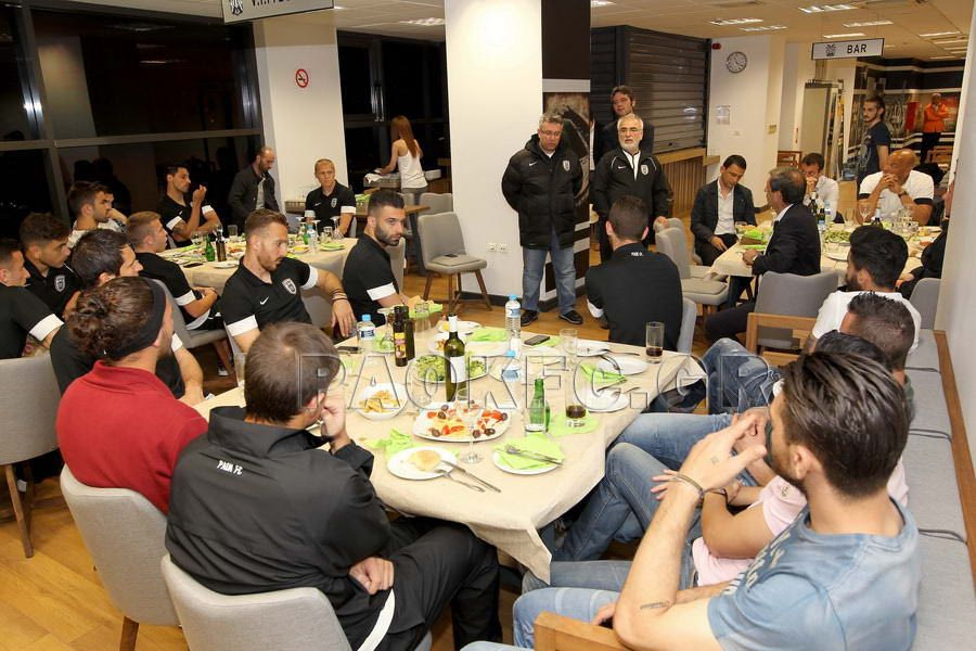 Το αγωνιστικό τμήμα του ΠΑΟΚ γευμάτισε σε ειδικά διαμορφωμένο χώρο στην Τούμπα, μετά το φινάλε του τελευταίου αγώνα της σεζόν με αντίπαλο τον Παναθηναϊκό. Ο Ιβάν Σαββίδης άδραξε, μάλιστα, της ευκαιρίας και είχε προσωπικά τετ α τετ με κάποιους ποδοσφαιριστές, όπως ο Νάτχο και ο Βούκιτς.