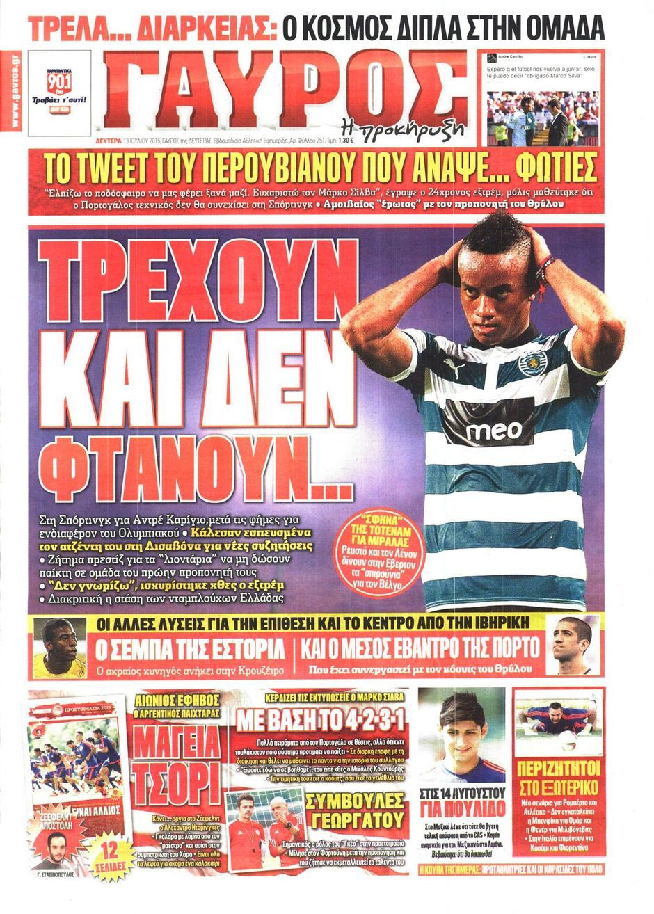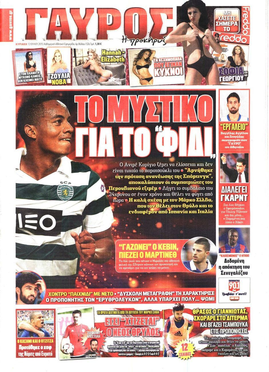 Δείτε τα πρωτοσέλιδα του “ερυθρόλευκου” Τύπου το καλοκαίρι του 2015 για τον Καρίγιο: