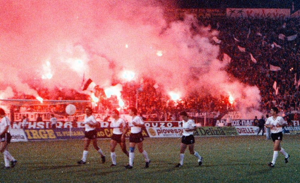 Όσο του επετράπη φυσικά. Διότι όσο μειώνονταν οι πιθανότητες της ελληνικής ομάδας τόσο ‘ηλεκτριζόταν’ η ατμόσφαιρα. Το ψηφιδωτό είχε εκσφενδονισμό της πραμάτειας που κουβαλούσε κάθε χέρι ή τσέπη. Ήδη από το 0-1 με άψογο τελείωμα του Καρέκα στο 17′, ύστερα από μαγική ασίστ του Ντιέγκο με το αριστερό, η αποστολή του ΠΑΟΚ έμοιαζε ακατόρθωτη. Δεδομένου πως είχε προηγηθεί το 1-0 στο Σαν Πάολο, η ομάδα του Ολλανδού Ρίνους Ίσραελ έψαχνε τρία τέρματα για ν’ αποκλείσει την πανίσχυρη ιταλική ομάδα, η οποία μέσα στο εκρηκτικό καλοκαίρι, καθώς είχε ζητηθεί από τους παίκτες η αποπομπή του Οτάβιο Μπιάνκι αλλά ο εμβληματικός πρόεδρος Κοράντο Φερλαΐνο τον κράτησε για άλλον ένα χρόνο, είχε ενισχυθεί εντυπωσιακά (Κοραντίνι, Κρίπα, Αλεμάο, Φούζι). Ο στόχος της διπλός: ν’ ανακτήσει τα σκήπτρα στη Serie A και να κατακτήσει το ευρωπαϊκό τρόπαιο. Ποντάροντας σ’ ένα σύγχρονο 4-3-3.