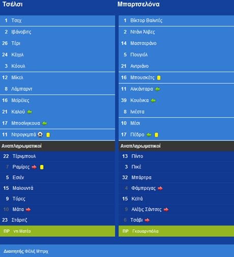 Κίτρινες κάρτες: 69′ Ραμίρες, 87′ Ντρογκμπά – 71′ Πέδρο, 76′ Μπουσκέτς