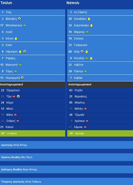 Η δυναμική της έμπειρης Τσέλσι υπερκέρασε τον ενθουσιασμό της "πρωτάρας" Νάπολι και οι "μπλε" πήραν την πρόκριση κερδίζοντας με 4-1 στην παράταση, στον επαναληπτικό της ήττας 3-1 στην Ιταλία. Ο Ιβάνοβιτς το καθοριστικό γκολ στο 105'.