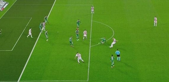 Μεγάλη συζήτηση σήκωσε το γκολ του Εστέμπαν Καμπιάσο με το οποίο ο Ολυμπιακός ισοφάρισε τον Παναθηναϊκό σε 1-1 στο 38ο λεπτό του ντέρμπι του “Καραϊσκάκης”. Κι αυτό γιατί ενώ ο επόπτης σήκωσε τη σημαία του για οφσάιντ του Ντομίνγκες που βρισκόταν μπροστά από τον Στιλ, ο Γιώργος Κύζας πήρε τη φάση πάνω του και έδειξε σέντρα.