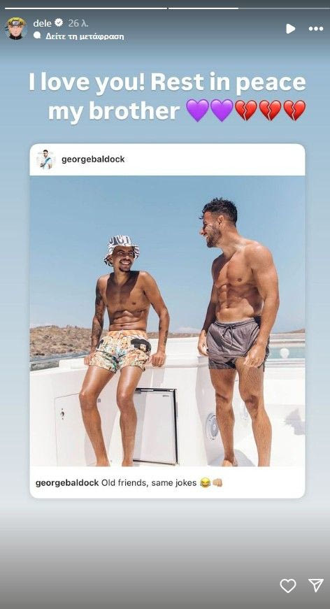 Ο Ντέλε Άλι αποχαιρέτησε τον κολλητό του Τζορτζ Μπάλντοκ με ένα συγκινητικό μήνυμα στο Instagram . Οι δύο παίκτες γνωρίζονται από μικροί από την κοινή πορεία τους στην ΜΚ Ντονς.