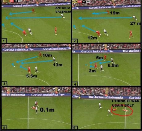 Οι μετρήσεις του σπριντ του Αντόνιο Βαλένσια στον αγώνα με τη Λίβερπουλ δείχνουν ότι ο μεσοεπιθετικός από το Εκουαδόρ άγγιξε τους χρόνους που κάνει ο κορυφαίος σπρίντερ του κόσμου, Γιουσέιν Μπολτ.
