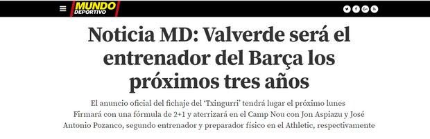 Η ” Mundo Deportivo” έχει το αποκλειστικό ρεπορτάζ, στο οποίο αναφέρεται ότι ο Ερνέστο Βαλβέρδε θα είναι ο διάδοχος του Λουίς Ενρίκε στον πάγκο της Μπαρτσελόνα. Ο Ισπανός τεχνικός, θα αρχίσει την προπονητική του καριέρα στους “μπλαουγκράνα” στις 1 Ιουλίου, ενώ η επίσημη ανακοίνωση της συνεργασίας τους θα γίνει στις 29 Μαΐου. Δύο μέρες μετά τον τελικό του Copa del Rey, ανάμεσα στην Μπαρτσελόνα και την Αλαβές.
