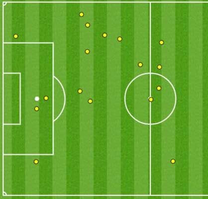 Καθοριστικό ρόλο στην επικράτηση της Ιταλίας έπαιξε η ικανότητα των αμυντικών της να περιορίσουν αισθητά τον Ρομέλου Λουκάκου. Ο Βέλγος επιθετικός ήταν εκτός τόπου και χρόνου, δεν βοήθησε σε κανένα σημείο του αγώνα κι αυτό οφείλεται στην εξαιρετική αμυντική λειτουργία της “σκουάντρα ατζούρα”. Χαρακτηριστικό το παρακάτω γράφημα, το οποίο δείχνει πως ο Λουκάκου είχε μόλις 17 επαφές με την μπάλα κατά τη διάρκεια του πρώτου μέρους, τις λιγότερες από κάθε άλλο παίκτη στον αγωνιστικό χώρο.