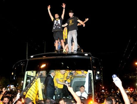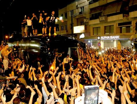Οι Κυπελλούχοι, όπως αναμενόταν, γνώρισαν την αποθέωση από το συγκεντρωμένο πλήθος για την πολύ μεγάλη νίκη τους επί του Ολυμπιακού στον τελικό του ΟΑΚΑ.