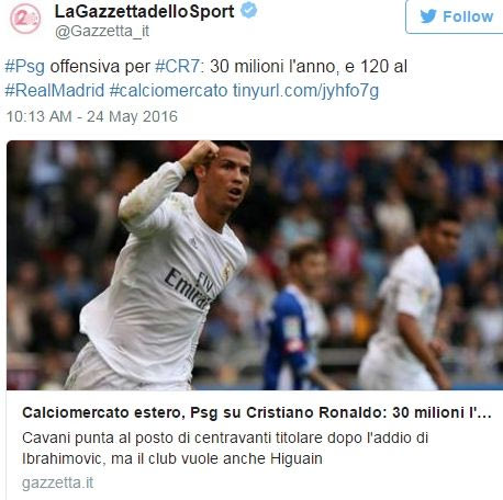 Όπως φαινεται λοιπόν είναι διατεθειμένη να κάνει τα πάντα για να τον αποκτήσει, από τη στιγμή μάλιστα που αποχωρεί και ο Ζλάταν Ιμπραχίμοβιτς. Οι Γάλλοι θέλουν τον Ρονάλντο για να γίνει ο νέος ηγέτης, το νέο σύμβολο της ομάδας και της πόλης του Παρισιού. Σίγουρα αυτό αποτελεί δέλεαρ για τον Πορτογάλο.