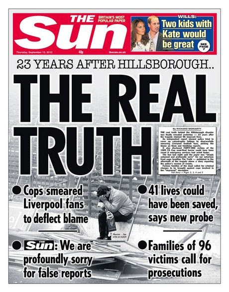 Η “Sun” ανασκευάζει τα όσα 23 χρόνια πριν καταλόγιζε στους οπαδούς της Λίβερπουλ και με τον τίτλο “Η πραγματική αλήθεια” επιχειρεί να διασκεδάσει τις εντυπώσεις. Άργησε..