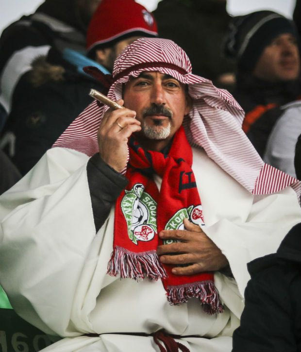 Στις κερκίδες, μερικοί φίλαθλοι της ομάδας αποφάσισαν να ντυθούν Άραβες εμπνευσμένοι από τις αποκριές. Μην ξεχνάμε ότι η Ξάνθη φιλοξενεί ένα από τα καλύτερα καρναβάλια της χώρας.