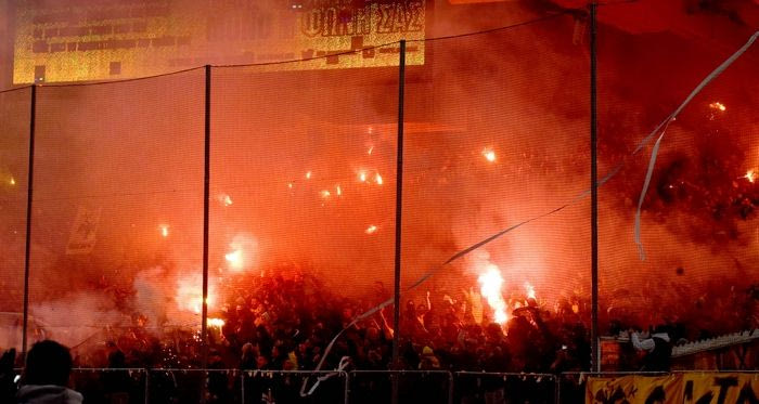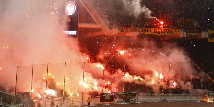 Ματαίως η ΠΑΕ ΑΕΚ επιχειρούσε από τα μεγάφωνα να συνετίσει, με βάση τους κανονισμούς τον κόσμο, να μην χρησιμοποιεί βεγγαλικά. Ηταν τέτοια η…πώρωση εκείνη την ώρα που τέτοιους είδους μηνύματα δεν θα μπορούσαν να βρουν ανταπόκριση.