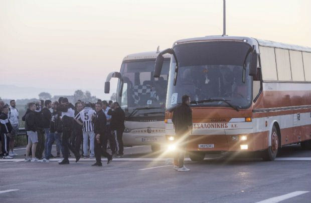 Το κονβόι των πούλμαν με τους οπαδούς του ΠΑΟΚ ξεκίνησε από τα ξημερώματα του Σαββάτου με προορισμό την Αθήνα. Δείτε φωτογραφικό υλικό από την κάθοδο των ΠΑΟΚτζήδων στην πρωτεύουσα για τον τελικό του Κυπέλλου με την ΑΕΚ (PHOTOS).