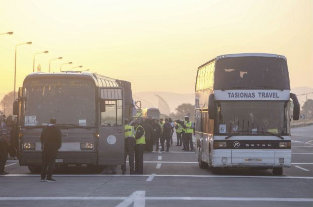 Από τις 5 το πρωί συγκεντρώθηκαν τα πούλμαν στα Μάλγαρα κι αφού ελέγχθηκαν από την αστυνομία, πήραν το “ok” και αναχώρησαν για την πρωτεύουσα.