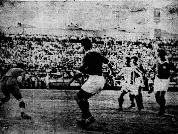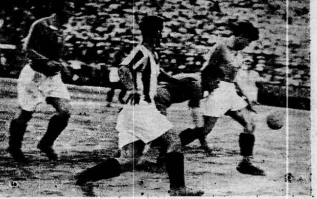 Αυτή είνε η αρχή μόνον. Και κανείς δεν μπορεί να περιγράψει καλά-καλά τι επηκολούθησε. Γεγονός είνε ότι αιφνιδίωσς ο Αποστολόπουλος (του Ολυμπιακού) ο Χιονίδης και ο Σταφυλίδης (του Παναθηναϊκού) ευρέθησαν εις το έδαφος, ο κόσμος και ιδίως οι θερμόαιμοι φίλαθλοι ώρμησαν εις το γήπεδον. Ναύτες, τραυματίες και ανάπηροι, αστυφύλακες, ΕΣΑ, παίκται και διαιτητής έγιναν ένας ακατανόητος συρφετός, πατερίτσες και μπαστούνια εθεάθησαν κραδαινόμενα απειλητικά, η συμπλοκή εγενικεύθηκε και εντελώς ολίγου το γήπεδον είχε μεταβληθή εις στίβον ταυρομαχιών. Θύματα: Ο Χιονίδης, ο Αποστολόπουλος, ο Νικολαΐδης και ένας ανάπηρος με τις γαλάζιες φόρμες του.