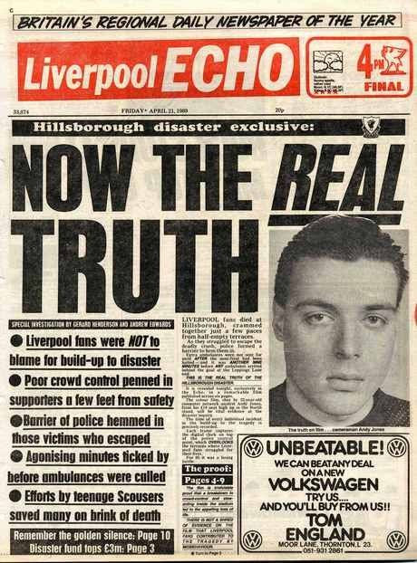 Δεν θα μπορούσε να υπάρχει μια τέτοια συνωμοσία κι αλλοίωση της πραγματικότητας χωρίς την συνεισφορά του Τύπου. Δεν ήταν μόνο η Sun με το εμετικό πρωτοσέλιδο με τίτλο “Η αλήθεια” που έλεγε πως “οι οπαδοί έκλεβαν τους νεκρούς, κατουρούσαν τους γενναίους αστυνομικούς και έδερναν αυτούς που έδιναν το φιλί της ζωής”. Σχεδόν όλες οι εφημερίδες φιλοξένησαν τις επόμενες μέρες της τραγωδίας ρεπορτάζ που μιλούσαν για οπαδούς που επιτέθηκαν στα ασθενοφόρα, έκαναν βανδαλισμούς κι όχι μόνο προκάλεσαν το δυστύχημα, αλλά επιβάρυναν τις όποιες διαδικασίες διάσωσης. Την θέση των καταθέσεων που φώτιζαν ξεκάθαρα τις ευθύνες των αρχών, πήραν 100% κατασκευασμένες αναφορές που μιλούσαν για χουλιγκανισμούς που δεν συνέβησαν ποτέ.