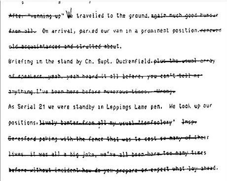 Όπως ο ίδιος ο πρωθυπουργός της Αγγλίας δήλωσε σήμερα στην Βουλή, τα ανώτερα στελέχη της αστυνομίας αλλοίωσαν σκόπιμα 164 καταθέσεις απλών αστυνομικών που ήταν εκείνη την ημέρα στο γήπεδο. Εκατόν εξήντα τέσσερις καταθέσεις, που έλεγαν τα πράγματα όπως έγιναν, αλλοιώθηκαν πριν φτάσουν στα χέρια του Λόρδου Τέιλορ. Αφαιρέθηκαν εντελώς 116 παράγραφοι, που περιέγραφαν τις αστυνομικές παραλείψεις και εξηγούσαν πως από την ώρα που ξεκίνησε το κακό, δεν υπήρξε καμία συντονισμένη ενέργεια που θα γλίτωνε ζωές.