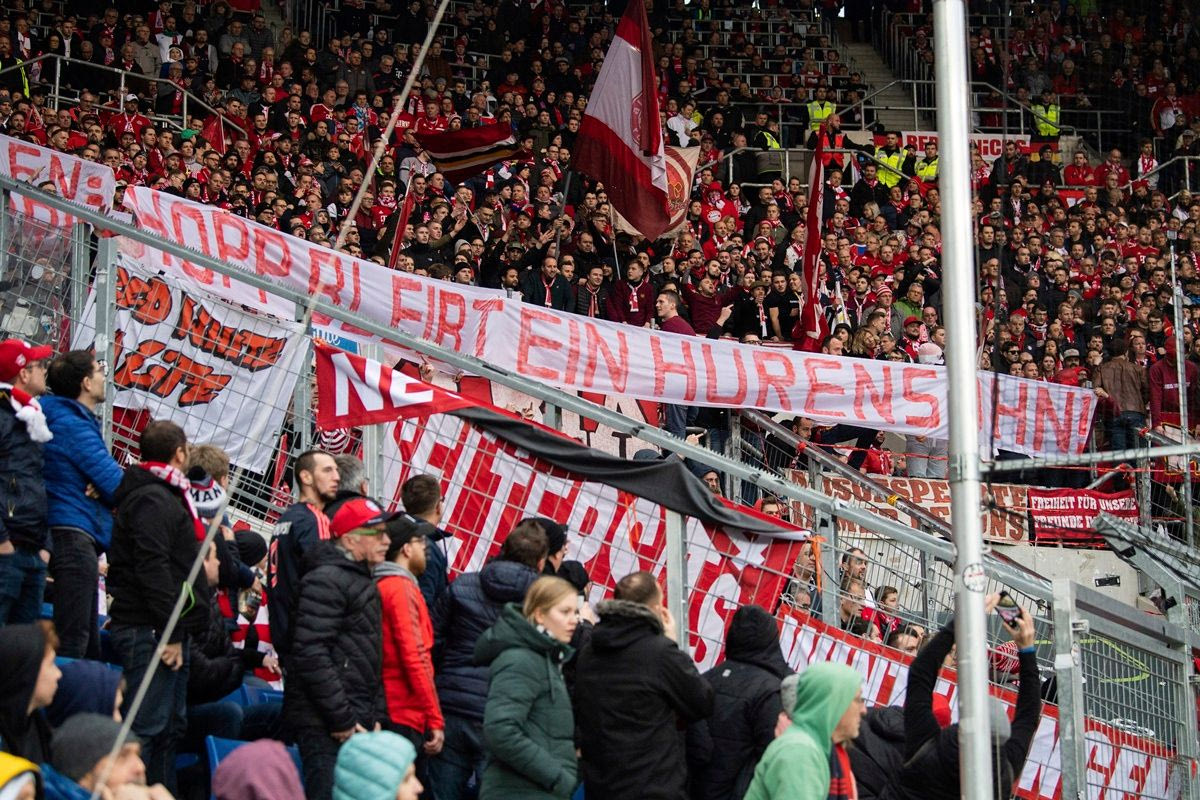 Ορισμένοι φίλοι της Μπάγερν βρήκαν την ευκαιρία να ανεβάσουν ένα πανό: “Ο Ντίτμαρ Χοπ παραμένει π…ς γιος”. Ο διαιτητής διέκοψε 3 φορές τον αγώνα, όσο όλη η Μπάγερν, από τους παίκτες και τον προπονητή μέχρι τον αθλητικό διευθυντή Χασάν Σαλιχάμιτζιτς, το μέλος του εκτελεστικού συμβουλίου και επόμενο πρόεδρο Όλιβερ Καν και τον νυν πρόεδρο του συμβουλίου Καρλ Χάιντς Ρούμενιγκε πήγαν στη γωνιά των φιλοξενουμένων για να ζητήσουν να κατέβει το πανό. Μπροστά στην άρνηση (κατέβαινε και ανέβαινε συνεχώς), η απόφαση του διαιτητή Κρίστιαν Ντίνγκερτ ήταν οι δύο ομάδες να φύγουν για τα αποδυτήρια. Η ακόμα πιο ρηξικέλευθη απόφαση ήταν να επιστρέψουν. Όχι για να παίξουν κανονικά τα εναπομείναντα λεπτά, αλλά για να αλλάξουν πάσες από το 77′ μέχρι το 90′, υπό το βλέμμα του διαιτητή που δεν έβλεπε διακωμώδηση ποδοσφαίρου, αλλά απάντηση.