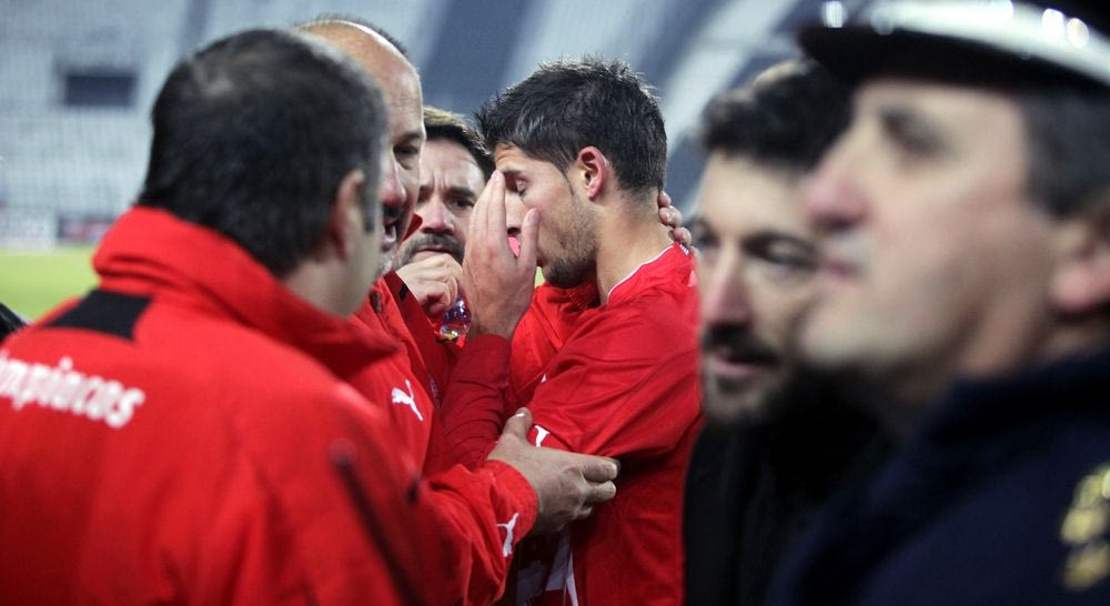 Αμέσως, ο προπονητής του Ολυμπιακού μεταφέρθηκε με φορείο προς τα αποδυτήρια, όπου του παρασχέθηκαν οι πρώτες βοήθειες.