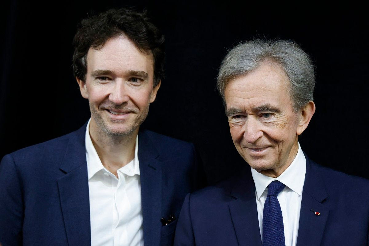 World's top luxury group LVMH head Bernard Arnault (R) and his son, CEO of LVMH Holding Company, Antoine Arnault (L) attend the Vivatech technology startups and innovation fair in Paris, on June 15, 2023. (Photo by Ludovic MARIN / AFP)