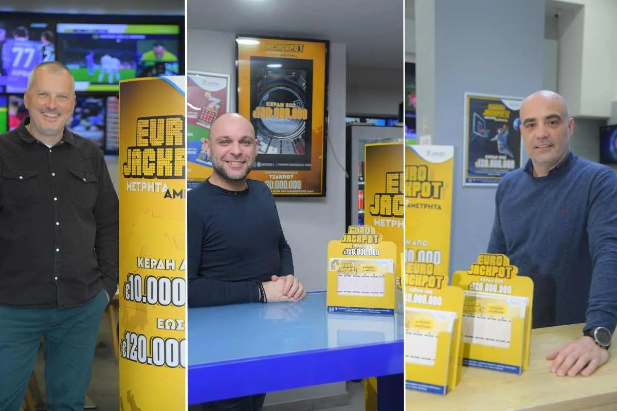 ΣΠΟΡ Αύριο η πρώτη κλήρωση του Eurojackpot στην Ελλάδα: Κέρδη χωρίς σύνορα μέχρι και 120 εκατ. ευρώ – Μόνο στα καταστήματα ΟΠΑΠ κάθε Τρίτη και Παρασκευή SHARE share this on facebook share this on twitter share this on messenger share this on messenger BRAND EXPERIENCE 07 ΜΑΡ 2024 Διαβάστε περισσότερα Ο αγώνας της Εθνικής Ομάδας με τη Σκωτία με αμέτρητες αγορές και «Επιστροφή Στοιχήματος»* από το Πάμε Στοίχημα Sports Party* με το ντέρμπι Ολυμπιακός-ΑΕΚ την Κυριακή από το Πάμε Στοίχημα