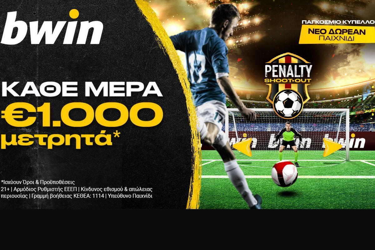 ΣΠΟΡ bwin – Penalty Shoot Out: €1.000 μετρητά, κάθε μέρα, εγγυημένα*! SHARE share this on facebook share this on twitter share this on messenger share this on messenger BRAND EXPERIENCE 22 ΝΟΕ 2022 Διαβάστε περισσότερα Ο αγώνας της Εθνικής Ομάδας με τη Σκωτία με αμέτρητες αγορές και «Επιστροφή Στοιχήματος»* από το Πάμε Στοίχημα Sports Party* με το ντέρμπι Ολυμπιακός-ΑΕΚ την Κυριακή από το Πάμε Στοίχημα
