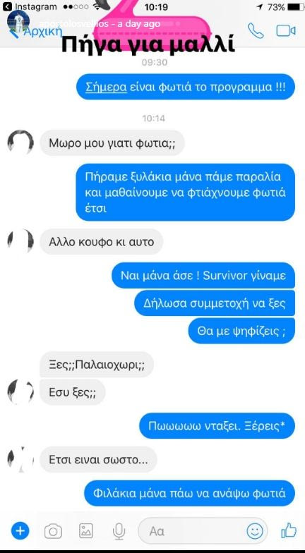 Ο άσος της Νότιγχαμ Φόρεστ ανέβασε στο instagram ένα print screen από διάλογό του με τη μητέρα του, στον οποίο της ανακοίνωνε πως δήλωσε συμμετοχή για το ριάλιτι επιβίωσης!