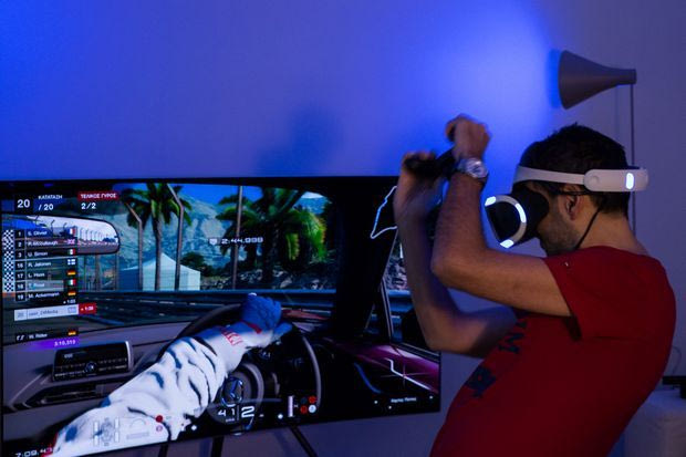 Στην… απλή οδήγηση, αυτή που ξέραμε τόσα χρόνια στους τίτλους της θρυλικής σειράς Gran Turismo παίζοντας είτε με χειριστήριο, είτε με τιμόνι, το κεφάλι μας ήταν σταθερό κοιτάζοντας την οθόνη. Το ίδιο και το βλέμμα, καρφωμένο σε ένα σημείο. Τώρα όμως, όταν μπαίναμε σε μια στροφή, γυρίζαμε το κεφάλι και στρέφαμε το βλέμμα λίγο προς τα πάνω κοιτώντας στο βάθος πώς συνεχίζει ο δρόμος. Ταυτόχρονα ρίχναμε και ματιές προς την τυφλή γωνία της στροφής.