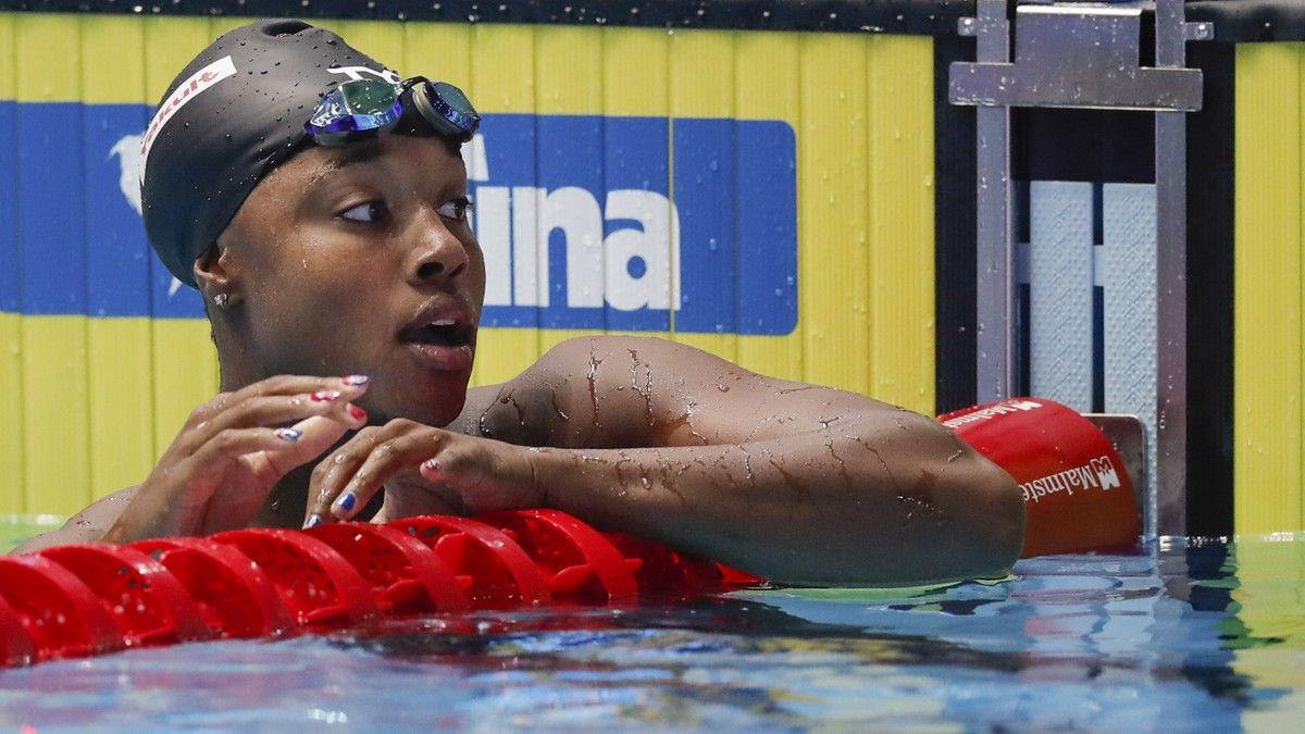 Η Αμερικανίδα κολυμβήτρια Σιμόν Μάνιουελ μετά από τη νίκη της στα 100μ. ελεύθερο στο Παγκόσμιο Πρωτάθλημα της Γκουάνγκτζου, Νότια Κορέα, Σάββατο 27 Ιουλίου 2019 AP Photo/Mark Baker