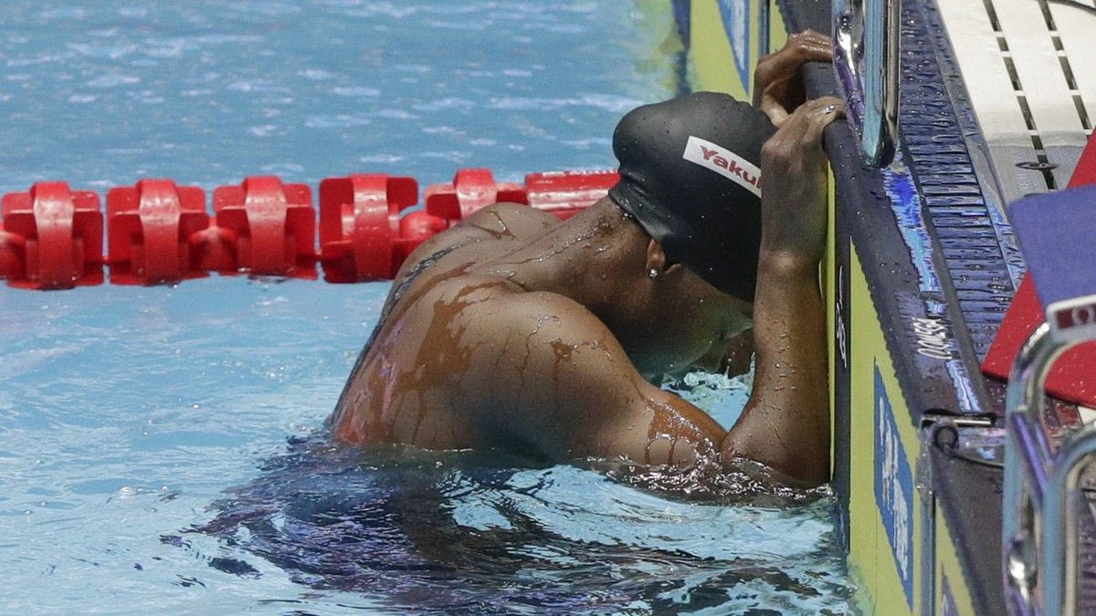Η Αμερικανίδα κολυμβήτρια Σιμόν Μάνιουελ μετά από την προκριματική σειρά των 100μ. ελεύθερο στους Ολυμπιακούς Αγώνες 2016 στο Ρίο ντε Ζανέιρο, Τετάρτη 10 Αυγούστου 2016 AP Photo/Martin Meissner