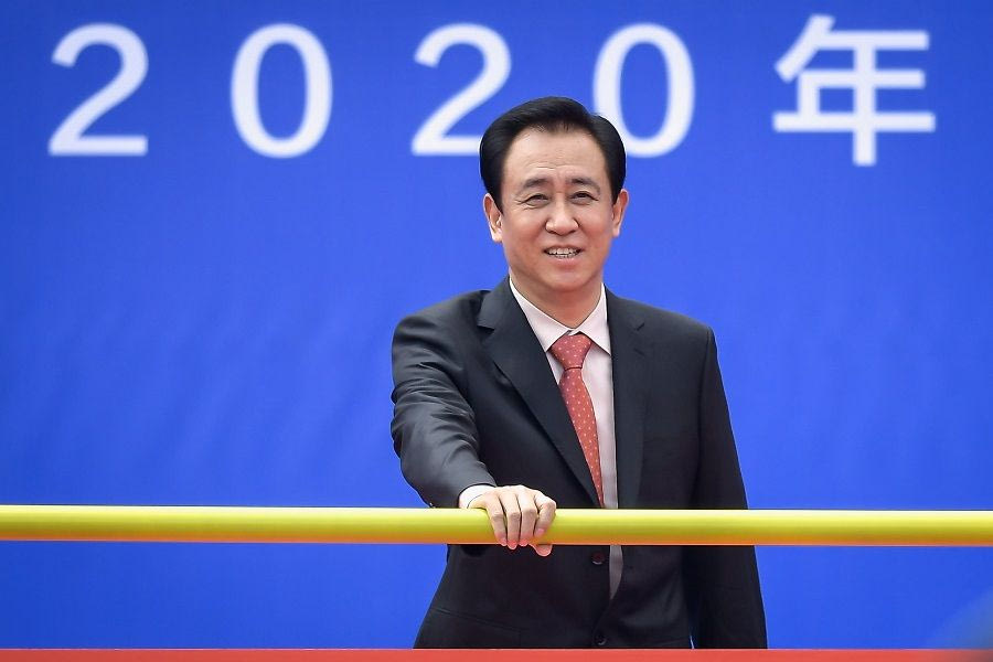 Chinese billionaire businessman and chairman of Evergrande Group Xu Jiayin, or Hui Ka Yan in Cantonese, attends the opening ceremony of the new home court of Guangzhou Evergrande Taobao of Chinese Football League, Guangzhou city, south China's Guangdong province, 16 April 2020.
