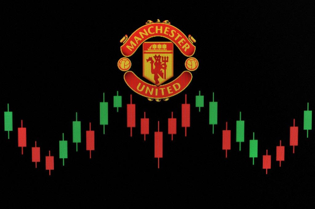 Manchester United Football Club (Great Britain, United Kingdom) football club logo and a stock market exchange graph displayed on a personal computer are seen in L'Aquila, Italy, on September 14th, 2023. Manchester United is among European clubs listed on the stock exchange. (Photo by Lorenzo Di Cola/NurPhoto) (Photo by Lorenzo Di Cola / NurPhoto / NurPhoto via AFP)