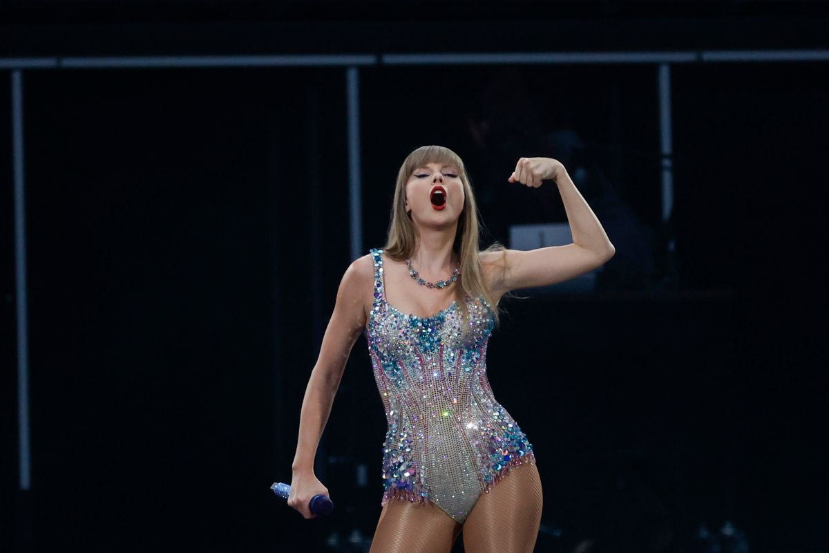 epa11378161 US singer and composer Taylor Swift performs on stage on occasion of her 'The Eras Tour' concert at Santiago Bernabeu stadium in Madrid, Spain, 29 May 2024. EPA/JUANJO MARTIN EPA