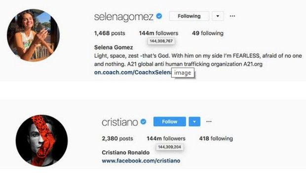 Η Gomez ήταν η χρήστης με τους περισσότερους ‘ακολούθους’. Χωρίς μάλιστα ιδιαίτερο κόπο. Από τη Δευτέρα τα σκήπτρα του ‘βασιλιά’ πέρασαν στον Cristiano Ronaldo.
