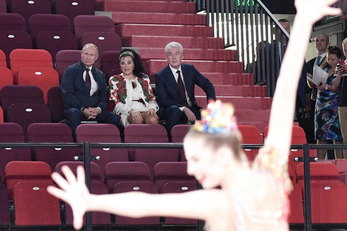 Ο πρόεδρος της Ρωσίας, Βλαντίμιρ Πούτιν, με την πρόεδρο της ομοσπονδίας ρυθμικής γυμναστικής της Ρωσίας, Ιρίνα Βίνερ, και τον δήμαρχο Μόσχας, Σεργκέι Σαμπιάνιν, παρακολουθούν προπόνηση στο 'Βίνερ Ουσμάνοφα Κέντρο Ρυθμικής Γυμναστικής', Μόσχα, Σάββατο 7 Σεπτεμβρίου 2019 Aleksey Nikolskyi, Sputnik, Kremlin Pool Photo via AP