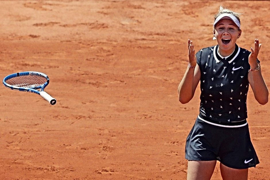 Η Αμάντα Ανισίμοβα πανηγυρίζει τη νίκη της επί της Σιμόνα Χάλεπ και την πρόκριση στους '4' του Roland Garros AP Photo/Christophe Ena