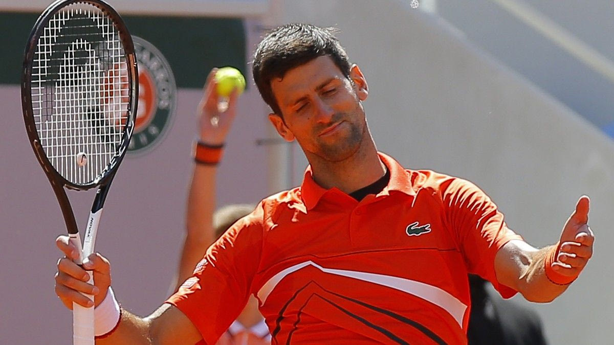 Ο Νόβακ Τζόκοβιτς αντιδρά μετά από έναν χαμένο πόντο στον ημιτελικό του Ρολάν Γκαρός 2019 κόντρα στον Ντόμινικ Τιμ στο Παρίσι, Σάββατο 8 Ιουνίου 2019 AP Photo/Michel Euler