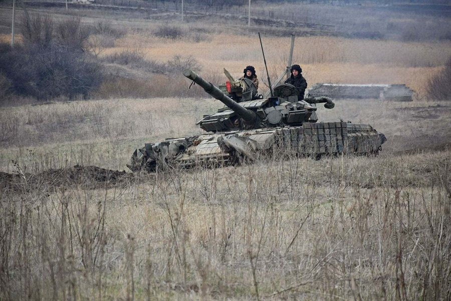 DONBASS, UKRAINE - APRIL 18: (----EDITORIAL USE ONLY MANDATORY CREDIT - "ARMED FORCES OF UKRAINE / HANDOUT" - NO MARKETING NO ADVERTISING CAMPAIGNS - DISTRIBUTED AS A SERVICE TO CLIENTS----) Ukrainian army conduct a drill with military tanks while military activity continues in the Donbas region, Ukraine on April 18, 2021. Armed Forces of Ukraine / Anadolu Agency (Photo by Armed Forces of Ukraine / ANADOLU AGENCY / Anadolu Agency via AFP) Anadolu Agency via AFP