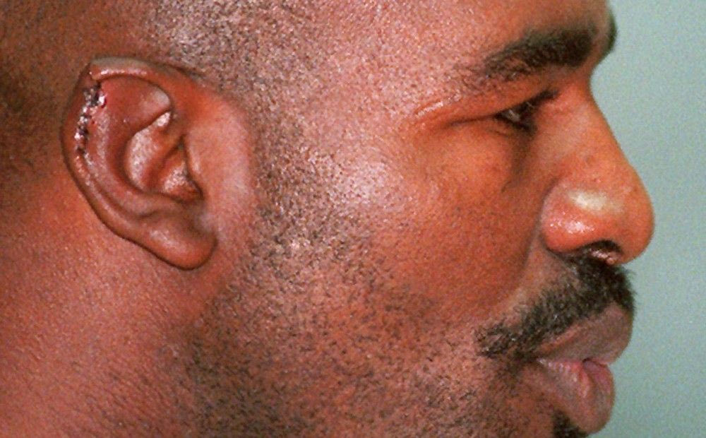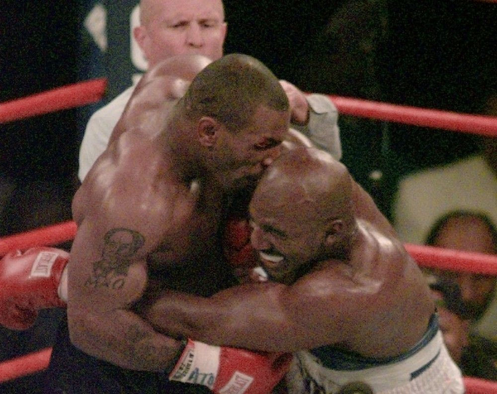 Ο Μιλς Λέιν, διαιτητής της αναμέτρησης, διακόπτει τον αγώνα εσπευσμένα. Όλα έχουν τα όριά τους, ακόμα και οι δαγκωνιές. Αυτή, στο αριστερό αυτί, δεν ήταν η πρώτη εκείνο το βράδυ. Ο Τάισον έχει δαγκώσει τον Χόλιφιλντ και στο δεξί αυτί, εξαγριωμένος για ακόμα μία κατά λάθος κουτουλιά, 38” δεύτερα από την έναρξη του δεύτερου γύρου. Στο τεχνικό επιτελείο του έχει μέχρι και πλαστικό χειρουργό.