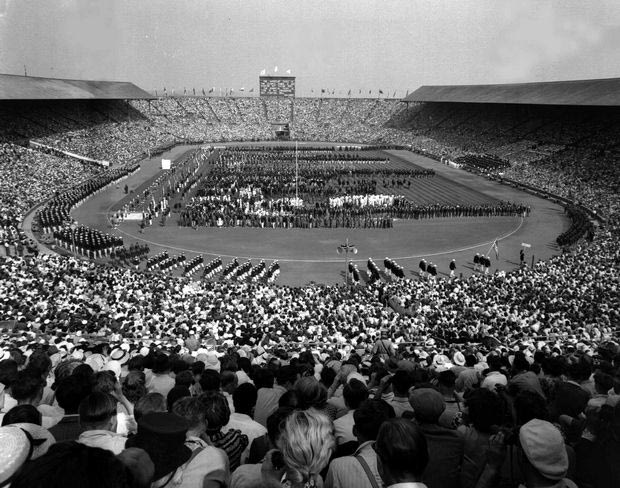 Η τελετή έναρξης των Ολυμπιακών Αγώνων του 1948 στο Λονδίνο. Τέσσερα χρόνια μετά την ακύρωσή τους το 1944, όταν ακόμη μαινόταν ο β παγκόσμιος πόλεμος AP